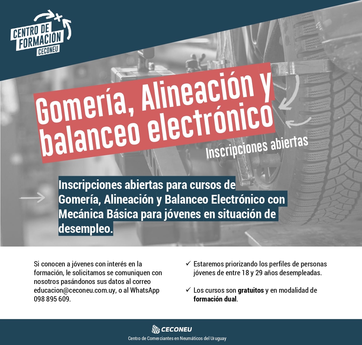 Iniciamos las inscripciones a cursos de gomería, alineación y balanceo electrónico con mecánica ligera, gratuitos y en modalidad de formación dual. Destinados a personas jóvenes de entre 18 y 29 años desempleadas.