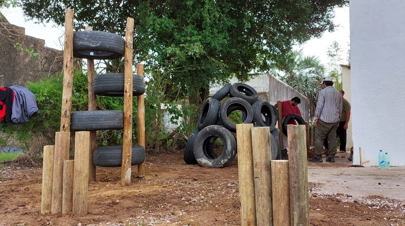 Este martes 24 estuvimos por la ciudad de Castillos en el Departamento de Rocha instalando juegos con neumáticos fuera de uso. Allí, la Dirección Departamental del MIDES y la Oficina Territorial de Castillos, junto a UNICEF, están reformando un local con el objetivo de asistir a familias migrantes.